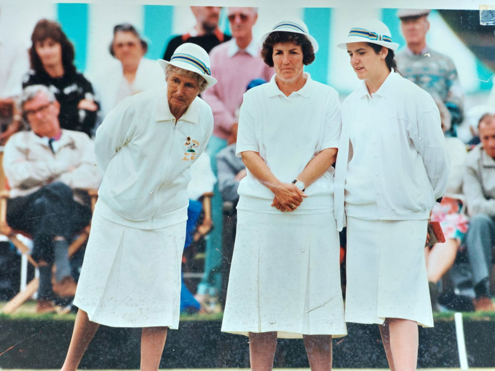 It was 30 years ago Amy last made the triples final at the Leamington Spa championships with her mum Chris Gowshall (centre) and Nora Hall.