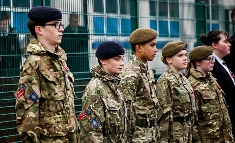 The school’s Army, Air, Marine, Scout and Sea Cadets marched to the front of the academy, where there was a short wreath laying in the memorial garden.